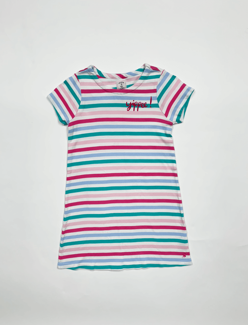 Fun stripe dress with 'yippee' print on chest