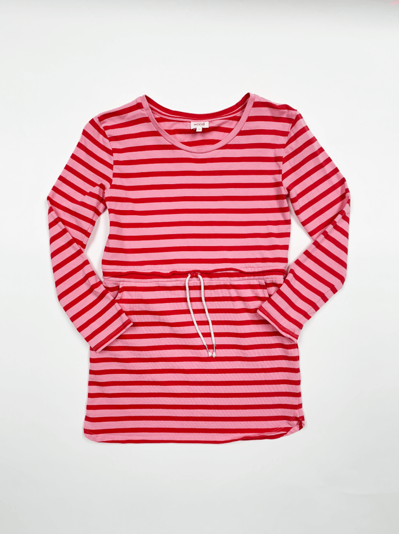 Pink & red stripe dress with drawstring waist